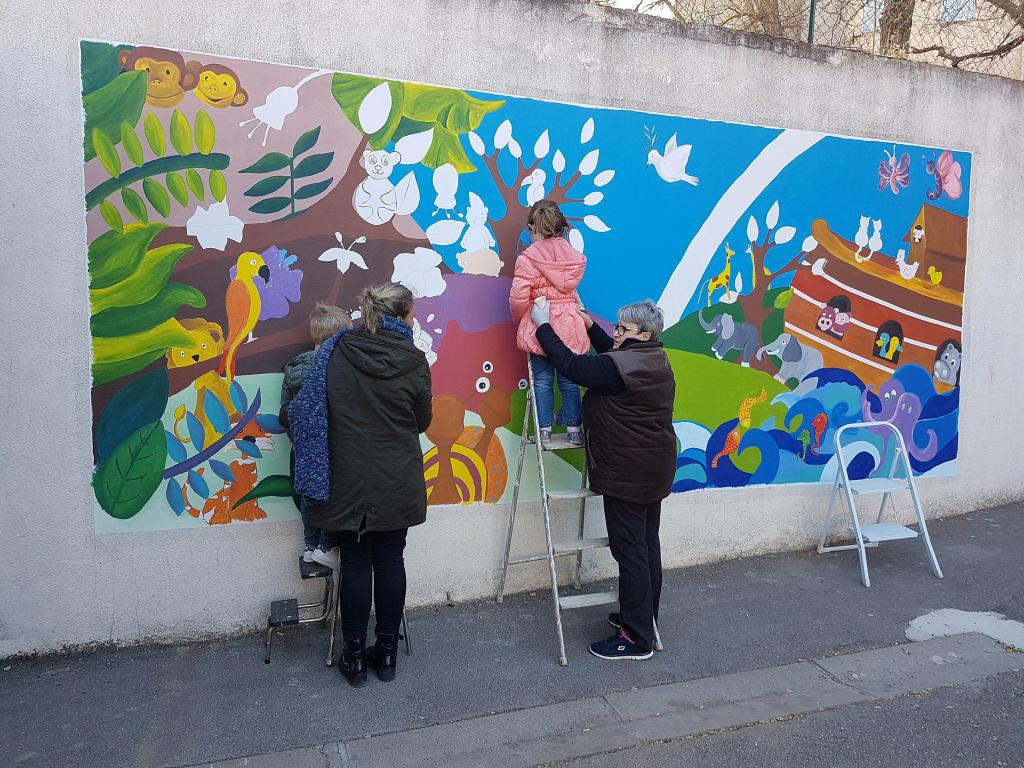 Chaque fresque est une aventure humaine. Elle se construit avec ceux qui la vivent : enfants, ados, animateurs, enseignants, habitants… Tous les âges, tous les profils sont les bienvenus. Ce sont leurs gestes, leurs couleurs, leurs envies qui nourrissent la création.