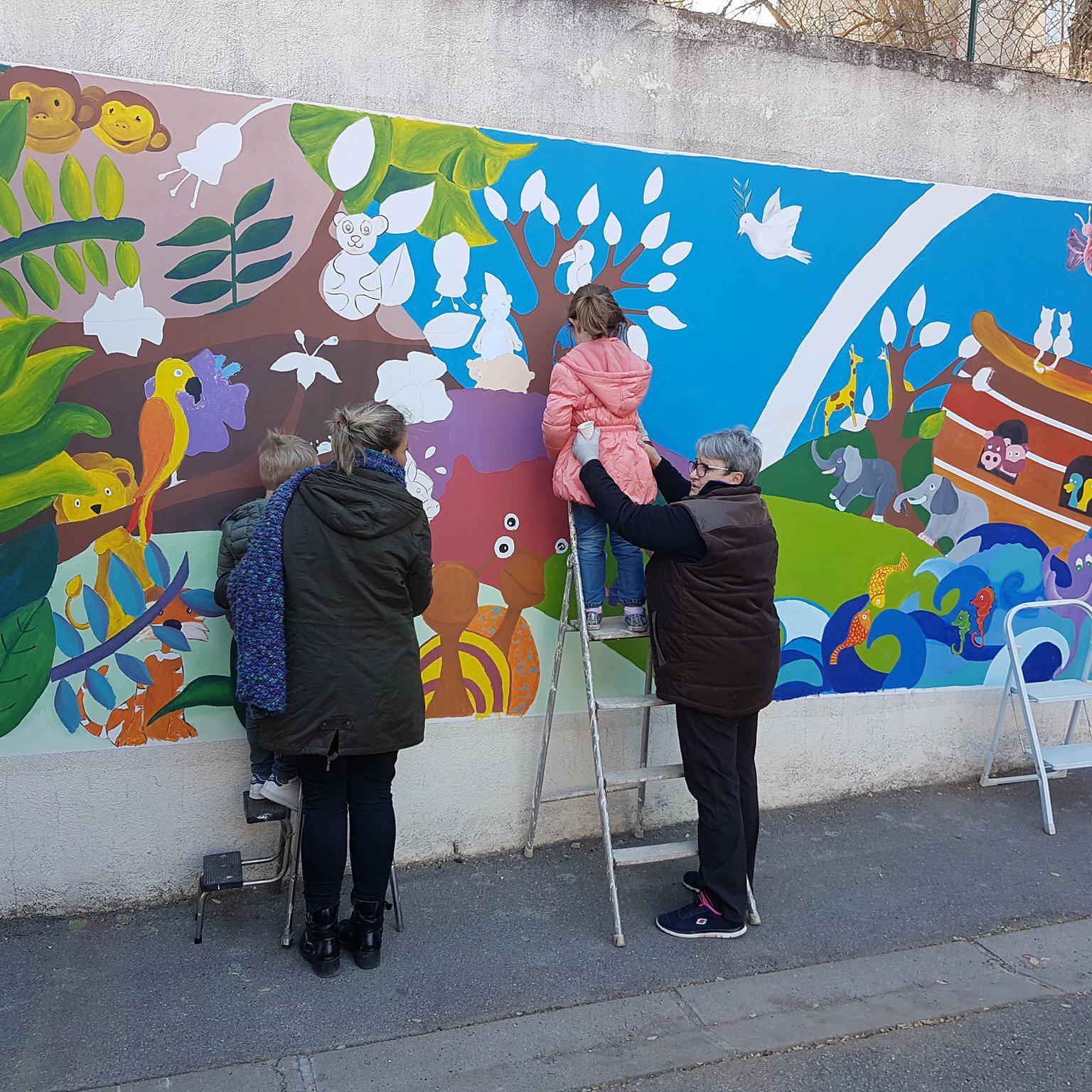 La fresque collective transforme le lieu où elle est réalisée. Un mur blanc devient une explosion de couleurs, une cour grise se remplit de vie, et chaque coin autrefois banal se métamorphose en un espace chaleureux et accueillant.